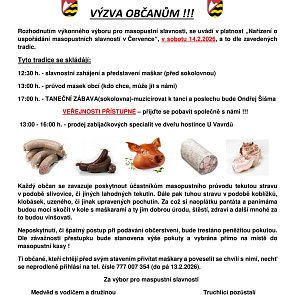 Ti občané, kteří chtějí před svým stavením přivítat maškary a poveselit se chvíli s nimi, nechť